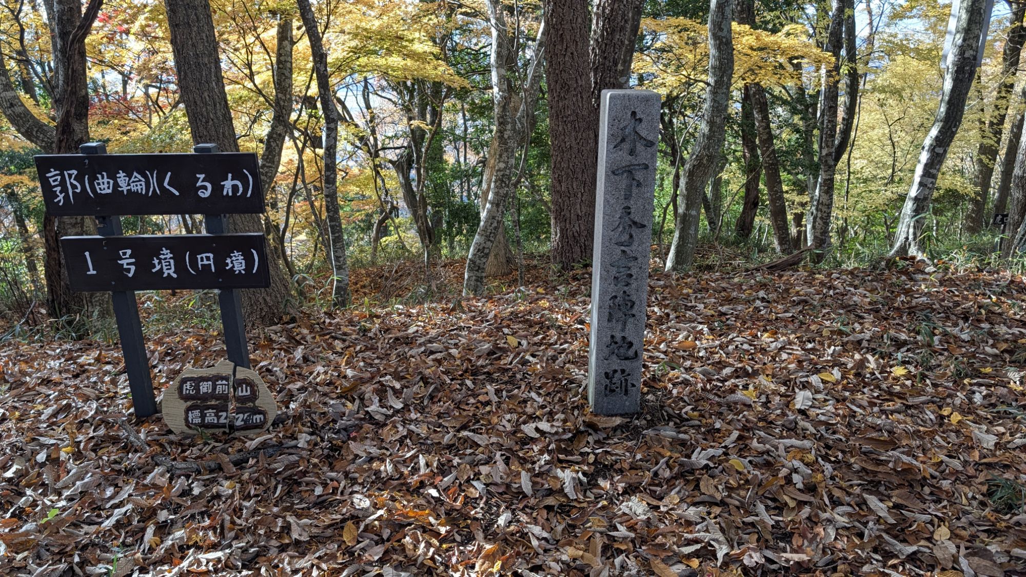 「虎御前山(とらごぜんやま)は、織田信長が浅井長政を攻める際、小谷城のすぐ近くの虎御前山に山城(付城)を築きました。木下秀吉が城番を務め、山頂には「伝織田信長陣」をはじめ、秀吉、柴田勝家、滝川一益などの陣跡が残っています。」
